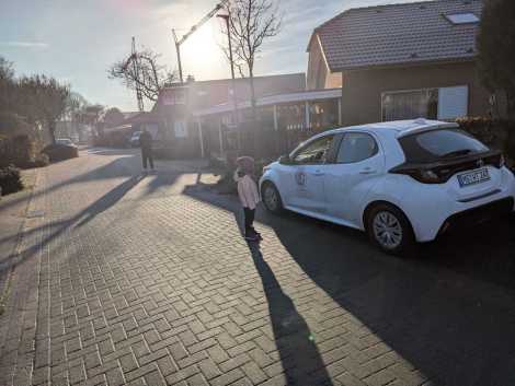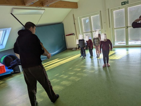 Den Ernstfall hat die Gruppe dann am letzten Tag bei gutem Wetter draußen geprobt. Einer der beiden Trainer hat den „Bösen“ gespielt und die Kinder aus dem parkenden Auto angesprochen. In Stufe 1 haben die Kinder trainiert, wie man dann reagieren sollte. Die Steigerung bei der Stufe 2 war dann, dass der „Täter“ aus dem Auto aussteigt und die Kinder verfolgt. Die Kinder sollten dann laut rufen: „Hilfe Feuer Hilfe Feuer“!